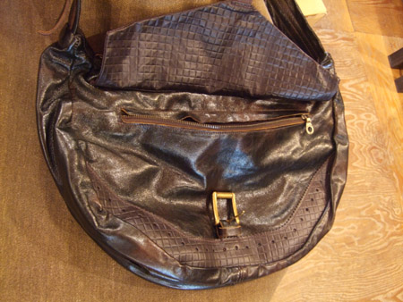 ベースはダークブラウンで、光沢のあるレザーを全体に使用しています。