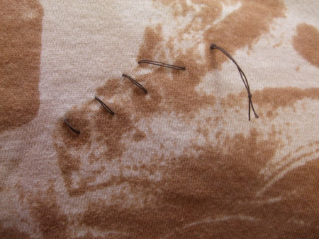 正面の画像を参考にして欲しいのですが、向かって右肩部分にはパッチワーク。
