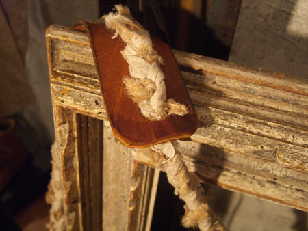 風合いの良い麻と、味の出た古いレザーのコンビ。