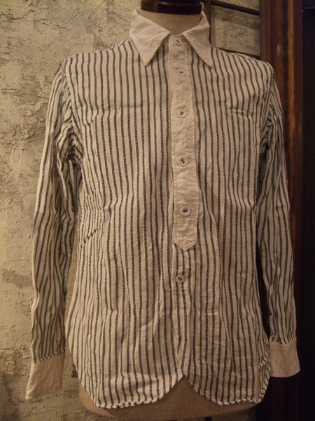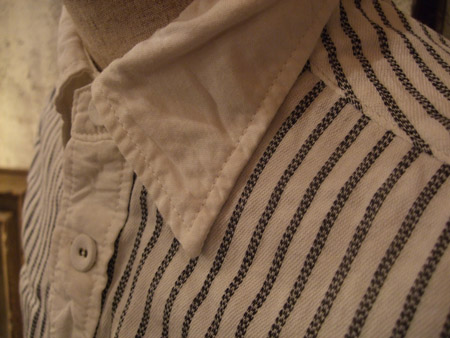 張りのある軍モノの枕カバーを使用した、クレリックシャツ。
