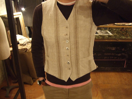 ちょっとした遊び心もスパイスとなっているこのベストとシャツ。