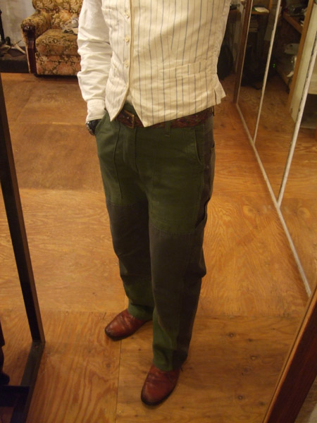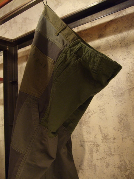 ODグリーンのパッチワークパンツ