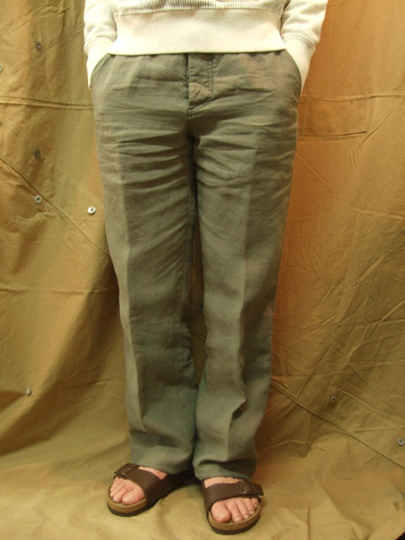 100%フラックスを使用したカジュアルで柔らかな印象のこちらは、レザーサンダルと合わせてラフに着こなしたい一本。