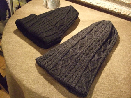 アラン柄のニットキャップ。
