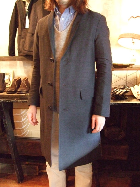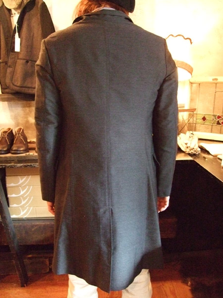 続いては、shape memory woolという生地のチェスターフィールドコートです。