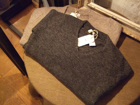 Vネックニット 16,800円GRAYSOLD/KHAKI SIZE 46 48SOLD OUT高密度のニット。まるでフェルトのような質感です。