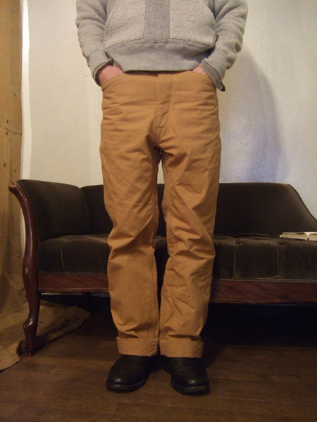 アメリカンワークといえば、茶色のダックを忘れるわけにはいきません。タフで、差し出がましくなく、さらりと良い表情を見せるダック。イイ男のような素材ですね。