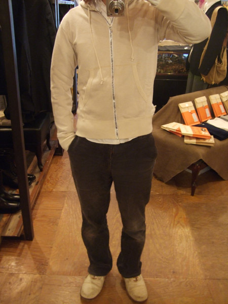 そして上記のフォックス氏の茶綿を裏地に使用したパーカが。