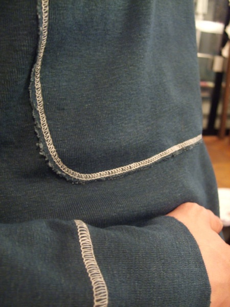 ちょっとわかりにくいと思いますが、身頃、袖、ポケットの生地色がツートーンになっています。