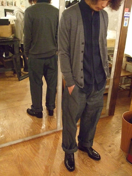 sixeのタキシードシャツに今回紹介したscyeのカーディガン。