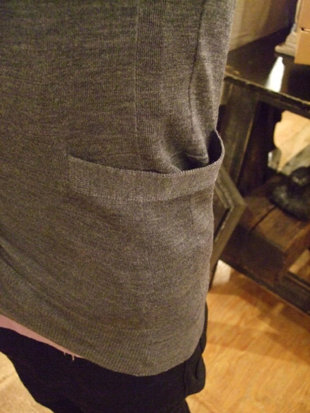 暗号みたいな名前になってしまいましたが、要は通常よりも細い16ゲージで編み上げた超薄手のニットカーディガンです。