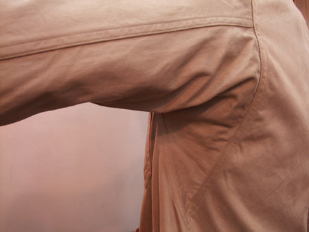 アームホールはタイトに仕上げているのですが、この立体裁断が腕の可動を楽にしています。
